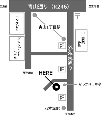 銀座線、半蔵門線、大江戸線 青山一丁目駅から徒歩4分 千代田線乃木坂駅から徒歩4分